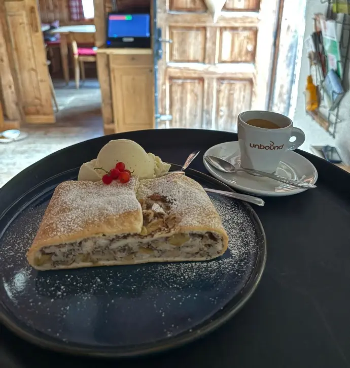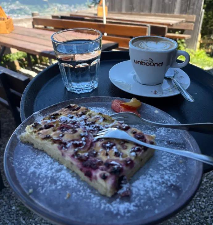Genießen Sie täglich von 09:00 bis 11:00 Uhr ein reichhaltiges Almfrühstück auf der Aldranser Alm. Frisches Bauernbrot, regionale Spezialitäten, hausgemachte Marmeladen, Müsli mit Joghurt und ein süßer Abschluss aus unserer Backstube machen den Start in den Tag zu einem echten Genuss über Innsbruck.